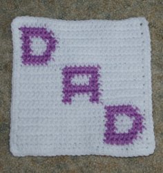 Make Dad a fun crochet afghan square. Spell out his name so he can keep it always. Red Heart Super Saver is used for this free crochet pattern.