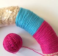 Great way to use up ends of skeins of yarn. I'd call this wreath "Projects Of The Past Anytime Wreath" Great Idea! ksaugustsson