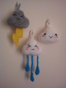 Not all storm clouds are scary! These Cute Little Clouds are the most adorable storm clouds ever. This free crochet amigurumi pattern includes directions on how to crochet not only a cloud, but also raindrops and lightning, as well. Fiberfill is used to stuff them, and black embroidery floss is used to create their cute faces. Give this trio of clouds as a gift to an expectant mom. It's a great item to hang in a baby's nursery.
