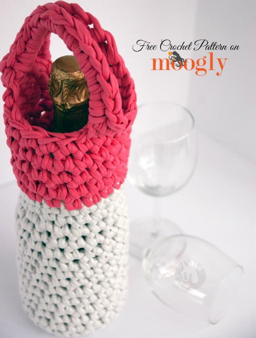 If you're looking for a way to use your stash of t-shirt yarn, Learn How to Make a Wine Carrier. Keep those wine bottles from rolling around in the car on your trips to the park this summer. The color-blocking design of this free crochet pattern is trendy and fun. Most wine bottles will fit snugly in the stretchy yarn. You'll use a magic circle to start this fun, easy project for beginners. After you've mastered this pattern, make some more wine carriers to give to your wine-drinking friends. They'll love the convenience and style of this crochet bag.