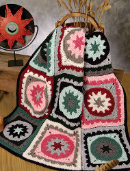 Beautiful piece, both the pattern and the colors. The one thing I dont like about the granny square type items is all the sewing you have to do after you have made all of the required sections of a project. The sewing together of everything is actually more time consuming that the crocheting. This project has very large squares so it looks like it would be much easier.