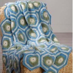 No one can forget this Lasting Impression Lapghan. This crochet afghan pattern from Premier Yarns is so unique that people will want to get up close to see it, especially since the motifs go in different directions. The circles and hexagons put together create a crazy pattern of shapes that continues to look intriguing no matter how many times you see it. Impress people with your crochet skills by trying out this easy crochet lap blanket. If you want a larger blanket, all you have to do is use more yarn to make more pieces.