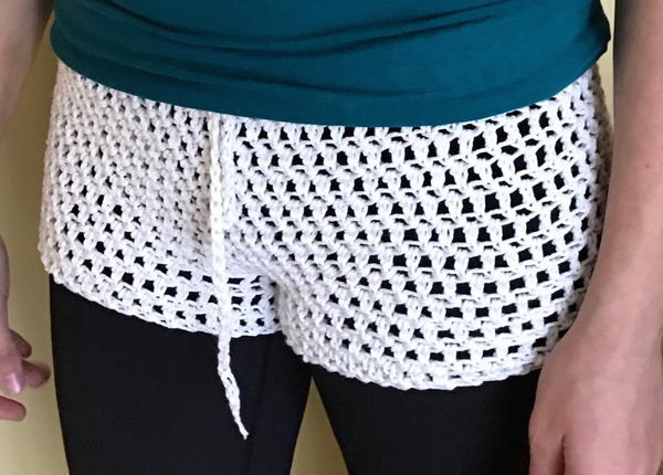 "The Bella B Shorts pattern is simple to make, and so on trend. You can make them with your choice of worsted weight yarn, either acrylic or cotton, just look for the number (4) on the yarn label. They are made in the round with only a little seam in the crotch. Sizes from Extra Small to Extra Large. A beginner shorts pattern that is simple and easy to follow, using only the Double Crochet stitch. Perfect for summer wear and as a beach cover up for your swim suit or bikini."