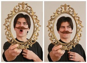 Does anyone else remember You must pay the rent! But I cant pay the rent! bit? We used to fanfold a tissue and do the whole little routine. We children thought it was hysterical. How much more fun would it have been with this handsome mustachio. You can attach it to a small stick as shown in the example, or if you want something a little handier, you can attach very thin round elastic like you would for a mask.