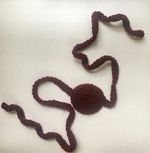 Optional: Fold nose warmer in half to find hdc directly across from end of round. Insert placemarker into halfway point to mark starting st for second strap.