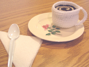 This cute cup will make you smile all day. Use this free crochet pattern to impress guests. Just don't mistake it for your morning cup of joe!