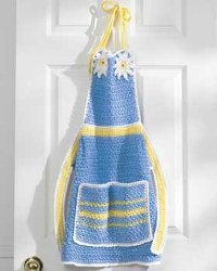 The daisy apron is made in one of my favorite color combo. I never thought about crocheting an apron. But this one is so cute, I think I must do it. How about a bridal gift. Matching apron, dish towels and dish clothe. You could go a little overboard and make up 2 placemats )