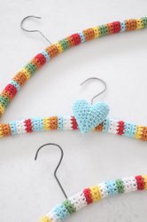 These are cute hangers! I did find that crocheting about 56 chains and then sc 55 for about 8 to 20 rows makes a much quicker hanger if you are in a hurry! when finished crocheting i find the middle by folding in half place piece over hook and whip stitch along the bottom to finish - of course great for horizontal stripes - not hte cute verticle stripes!
