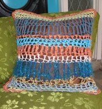 This is a great crocheted pillow cover. It uses a size Q crochet hook and you'll love the outcome. Worsted weight yarn is used and you can use any colors you want.
