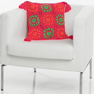 Brighten up any room with this Neon Motif Tassel Pillow free crochet pattern from Premier Yarns. By combining crochet motifs together, you can put a pop of color anywhere in your home. Each corner has a tassel that makes it look even more fun and exciting than the colors already do. Work up this refreshing crochet pillow pattern to add a delightful accent to your home decor that is both comfortable and fun.