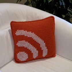 Simple crochet patterns like this RSS Feed Pillow in crochet and x-stitch make for fun challenges. These days everything is all about the internet so why not make this cute pillow to go with it? Red Heart Classic in Tangerine and white is used.