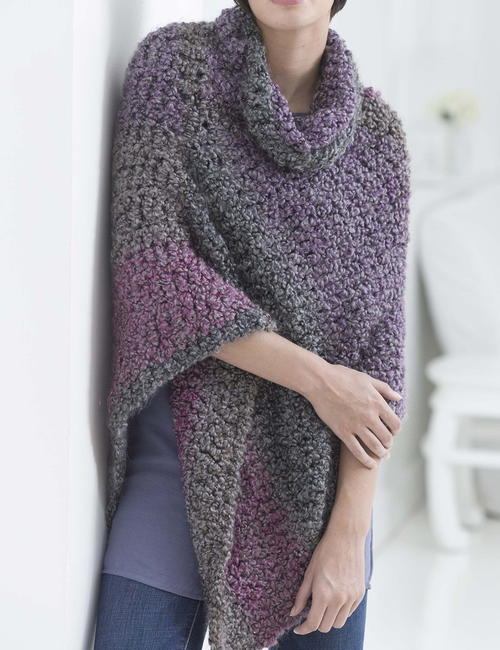 You're going to love this wonderfully comfy cowl neck poncho crochet pattern free from Lion Brand!