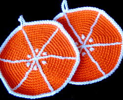 If you're looking for a bright and cheerful pattern that will also be used as a house held item, try making this "slice of summer" crochet project. The pot holders, which look like oranges, will add color and pizazz to your kitchen.