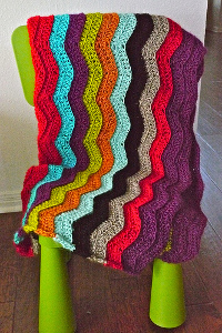 Such a fun afghan to look at with the bright color combination and the zigzag chevron design. It looks quite light to which is nice to use as a throw when the weather is just slightly cooler. Oh, the good news is that our teenage daughter (who has just started to crochet) saw this afghan on my screen right now and has decided SHE will make it. OK, so I can tackle the next things on my Things to Crochet list!