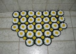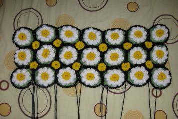 Very pretty and easy pattern. tHose are two of my favorite words. I really want to make this for at my door and my sink. I like that you can customize the shape. I need an arch shape for the kitchen. There will be some changes or that one. The dIsy will become poppies with red yarn. Thank you for sharing.
