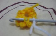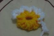 With your yellow yarn create the beginning flower again, working the first two rows. (only the second row instead of white, use Black.)