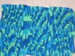 It is very hard to tell what exactly this rug is all about... until you click on the pattern and get a closer look at it. There are loops of scrunchy, fluffy loops in the center of each square. You will need just three skeins of yarn and 15 squares to complete this rug pattern. I actually think that the variegated yarn takes away from the effect of the textured loops inside the squares, but you can make up your own mind.