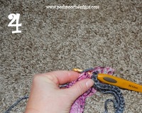 Row 3: We are putting the ruffle yarn on this row.