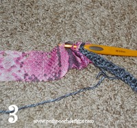 Next, push the hook through the next 3 holes, for a total of 4 holes: