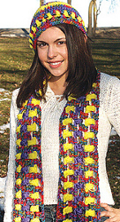 Crochet yourself this fabulous hat and scarf set. The bright striped colors make for a great design. This pattern is for the intermediate crocheter.