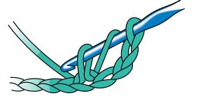 Insert the hook into the work. Yarn over and pull the yarn through both the work and the loop on the hook in one movement.