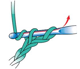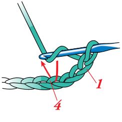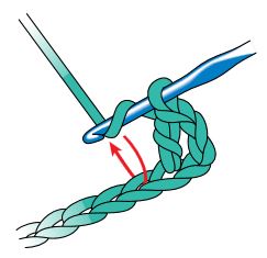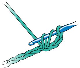 Insert the hook into the work (second chain from hook on the starting chain), yarn over and draw yarn through the work only.
