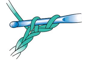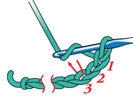 Yarn over and insert the hook into the work (third chain from hook on the starting chain)