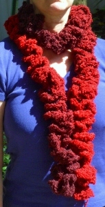 Make an Easy Ruffle Scarf with this crochet scarf pattern. Sensations Boucle yarn is used making the scarf work up quickly. Keep warm and walk out the door in style with this scarf.