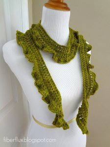 Less than one skein of sock yarn is needed to complete this Green Leaf Scarf, so it's a quick and easy crochet design to complete. This lightweight crochet scarf pattern is a great accessory for any season and girls of any age will love wearing this stylish scarf. Fingerling yarn is used with a slightly larger hook, which creates beautiful ruffles to give it a fun, feminine look. The lacy ruffles of this free crochet scarf pattern will definitely remind you of leafy greens.