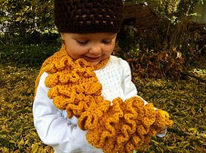 Toddlers won't want to leave the house without being bundled up in this Mustard Colored Ruffled Scarf. Create a bright and fun winter accessory with this free crochet scarf pattern. Make a matching one for you too by crocheting the pattern longer.