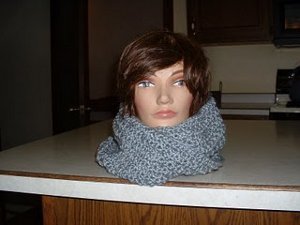 I like the scarf, but the head (with hair!) is pretty freaky! LOL Got the pattern though! LOL