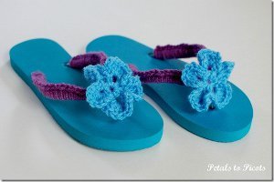 It is that time of the year again with I get to slip on a pair of sandals and let my toes have a little freedom after the cold months of wearing closed in shoes and boots. This type of flip flop is very inexpensive and what a simple way to make them personable. I love this pattern.