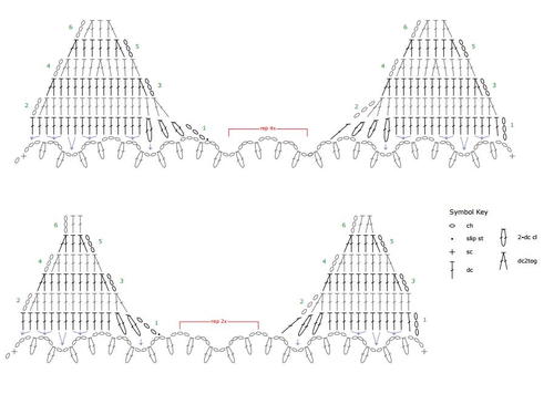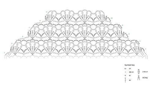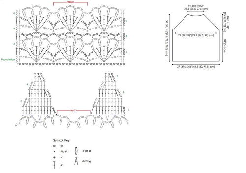 Pattern for this poncho is available on this page without having to go to the designers blog, which is a plus. I have never had trouble accessing any of the patterns via the links, but I have read that a lot of others have. A diagram is available here for this pattern also. The only thing it needs is a few pictures or illustrations to show how it looks at various stages of construction.