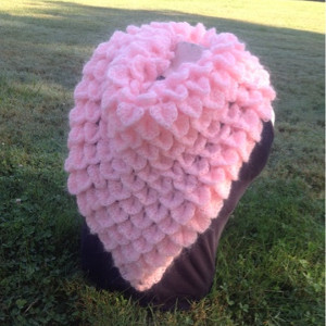A fun, fun shawl!! Warm, cozy and fluffy in pink.the shawl is made in a crocodile stitch that look like petals resting on one another. This will be a new stitch for me to learn. Although the pattern seems a bit complicated, this shawl will be worth the time it takes to make.