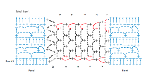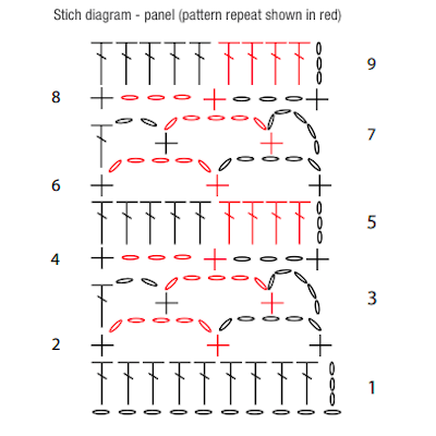 Crochet Gauge18 dc = 4" (10cm); Rows 2-9 = 4" (10 cm) in panel pattern