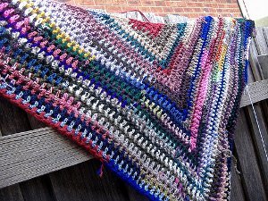 A really nice shawl and great for using up left over yarns. I am always amazed at just how much left over yarn and fabric I have so any chance to use them is appreciated and this pattern is particularly nice! It is so great that one just crochets until it is big enough, whether for a child or an adult. Thanks so much!