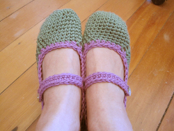 This pattern is actually for an adult pair of slippers for a change. Theyre rather plain (even for Mary Janes), but that could be easily remedied if you wished. The construction is different from other styles Ive seen, and I was surprised that the sole was a single layer instead of double like most adult slippers. Still, I might work one up just for curiositys sake.