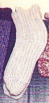 These crocheted socks are worked in lengthwise rows the whole way. The toe is worked in a round at the end of the foot. These socks are nice and bulky to keep your feet comfy.