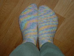 Cute socks, pretty easy for a first-timer, with a little coaching through the heel. But I couldn't find a "C" crochet hook, and made these with a "D" - also, my yarn was silky and difficult to keep the stitches snug - even so, these socks are snug. I will try again with a larger hook for a softer fit.