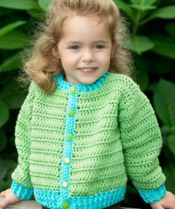 A very cute cardigan sweater for the little girl in your life. Cheerful and bright color theme on this sweater. So happy that the pattern is for crocheting instead of knitting because crochet works up so much faster. I printed the pattern out as a pdf and it is ready for when I find the exact yarn colors that I want to use.