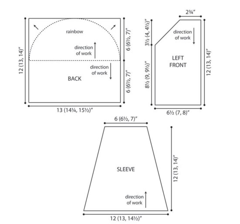 1. When making back, the rainbow is worked first. Shoulders are then added. Finally, lower section is worked from bottom of rainbow down to lower edge.