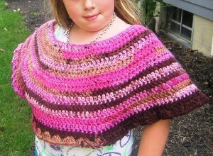With the economy still not at its best, it's easier for us all to whip up projects with yarn that we already have. This Recession Poncho is just what you need for your wardrobe (or for your child). Charisma bulky yarn is used allowing you to use less yarn and work up the crochet design much faster. The double crochet stitch is used throughout the pattern making this an easy crochet pattern for most. A variegated yarn is used for this poncho, but you can use any color you wish.