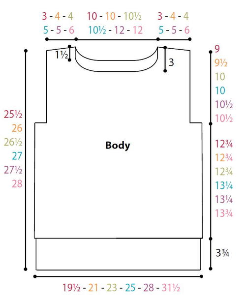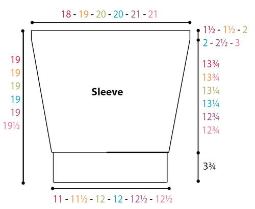 The instructions are written for smallest size. If changes are necessary for larger size(s) the instructions will be written thus ( ). Numbers for each size are shown in the same color throughout the pattern. When only one number is given in black, it applies to all sizes.