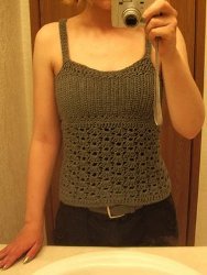 Very pretty top even though I find the color used rather dull for my particular taste. But, that aside, the pattern is really very nicely written and really easy to follow. Even though Aunt Lydias yarns are not available here in South Africa it should be quite easy to find a suitable substitute.