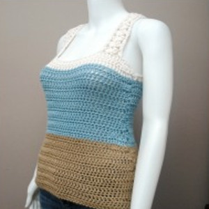 Unfortunately this pattern is only available for free in size XS. The other sizes have to be purchased. I, like most other normal women, are not a XS. This is a cute tank for the younger set, but I think they would be wearing their bikini for a day at the seaside and not a tank. This definitely is only for a day at the beach if you make it using cotton yarn, because you would be miserable in acrylic.