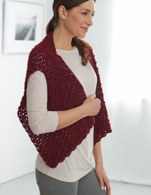 Called Cranberry Sauce Shrug because its color resembles cranberry sauce. But the style does not appeal to me. Too short at the back and you have to secure the front part all the time.