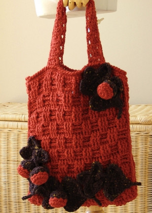 Forest Floor tote bag in done in basket weave stitch and in terracotta yarn. It's so beautiful, very elegant enhanced by the flowers on the body of the tote bag. Lovely!!