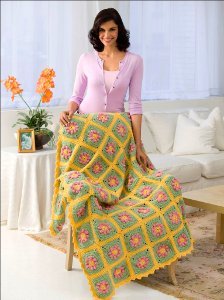 Using this free crochet afghan pattern and the help of the popcorn stitch you can make a beautiful, colorful floral throw. Crochet 108 squares and stitch them together for a fabulous country feeling.