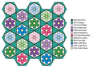 Color Combination #6 (make 3): Work petals with E, work center trim with D.