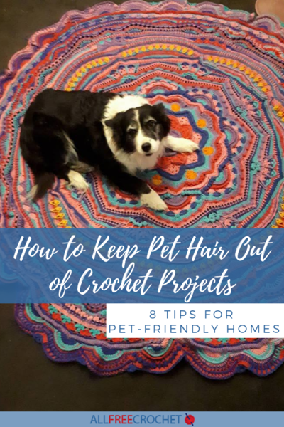 Just like dust, pet hair settles on just about every surface of your home. In order to avoid excess hair sitting on your WIPs, consider storing them somewhere while you're not working on them. Many crocheters recommend ziplock bags, but bigger projects can be tucked into plastic tubs or large bags like bedding bags or even garbage bags between crochet sessions.